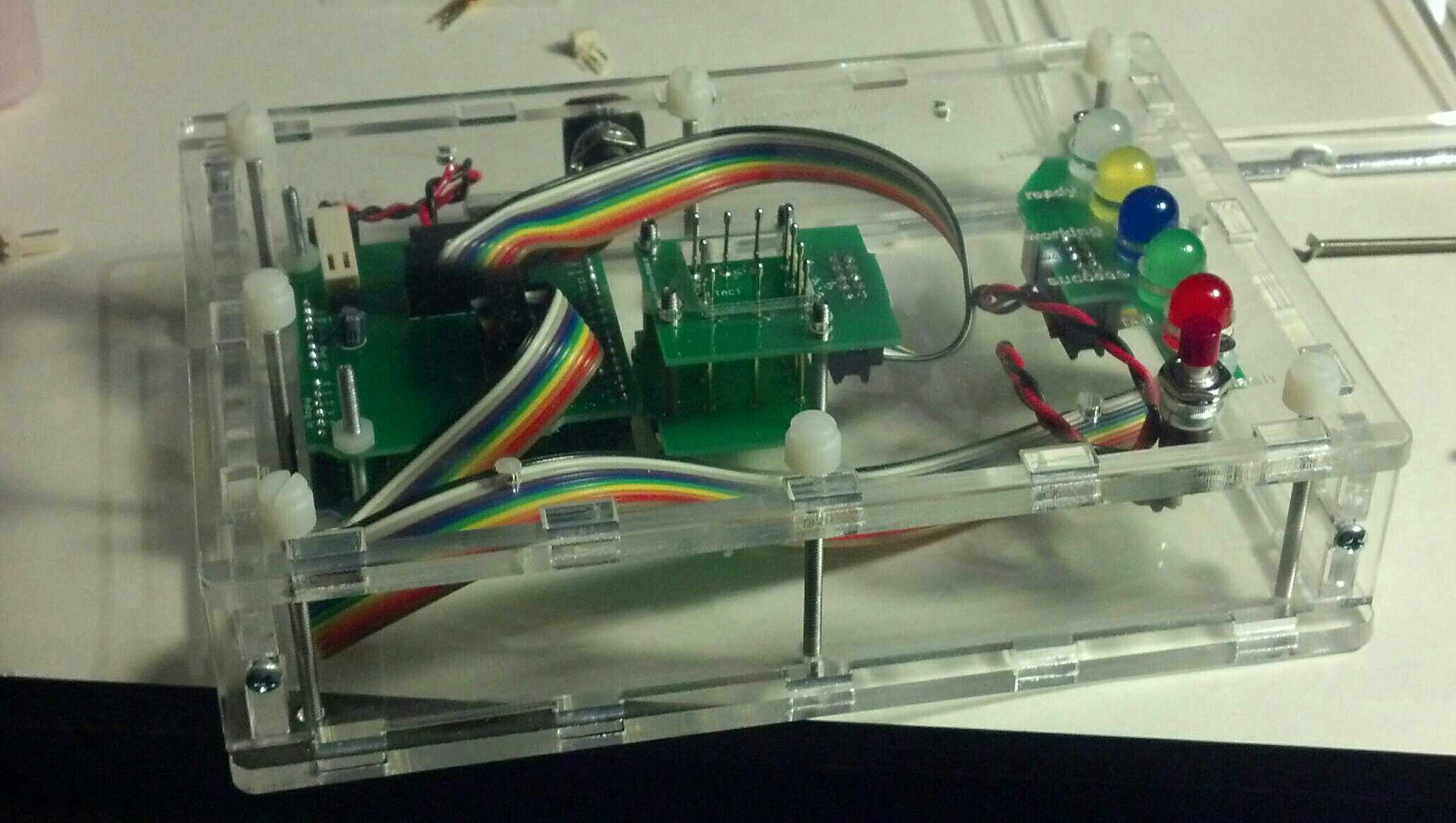 With the board fully populated, it was time to turn it on. It’s always scary to do the first power on test of a new project, particularly one where it’s impossible to do incremental tests. I flashed a spare Arduino with with ArduinoISP sketch, hooked it up to the programming header, and proceeded to burn a bootloader. Astoundingly, it worked the first time!